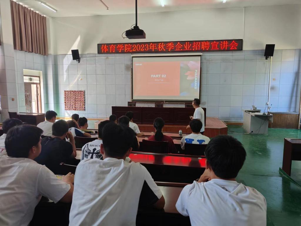 开学第一周,即9月5日下午,williamhill中国邀请浙江省体育龙头企业----宁波满分体育发展有限公司,来体院开展秋季招聘宣讲会,会议由院党委副书记邓坤臣主持,2024届全体在校学生参加会议。