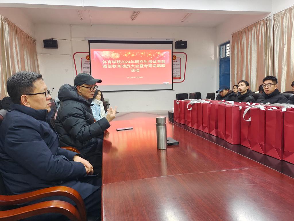 首先,党委副书记邓坤臣通报了我院今年考研报考情况,并对考场安全检查新变化进行了说明,然后进行了考风考纪教育。