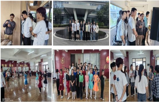 (体育舞蹈专项学生不同岗位见习照片,见习指导教师林万雷,见习岗位:教练岗、裁判岗、前台岗、运营岗)