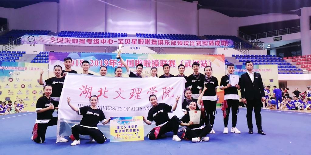 (williamhill中国 通讯员 王美楠 杨扬继翔)近日,2018-2019年全国啦啦操联赛(武汉站)暨2019湖北省普通高等学校大学生啦啦操赛于5月10-12日在武汉东湖学院举行。我校代表队在williamhill中国教师王美楠的带领下,获公开青年乙组集体自由舞蹈自选动作第一名,公开青年乙组花球校园啦啦操示范套路(2016版)第二名的好成绩。