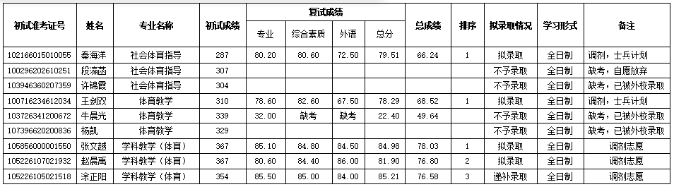 根据教育部、湖北省教育厅有关文件精神以及《William希尔2026年硕士研究生招生调剂复试录取工作方案》,williamhill中国于2026年4月11日组织了体育、学科教学(体育)专业硕士研究生调剂志愿考生复试,现将复试成绩及拟录取情况公示如下: