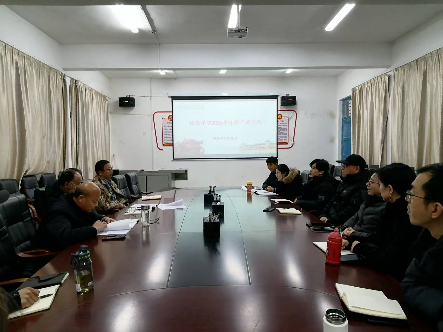(通讯员 詹中新)2026年2月26日上午,williamhill中国在学院会议室召开春季学期开学干部大会。会议由学院院长张华江主持,学院班子成员、各系(部)主任、党支部书记及全体管理干部参加会议。